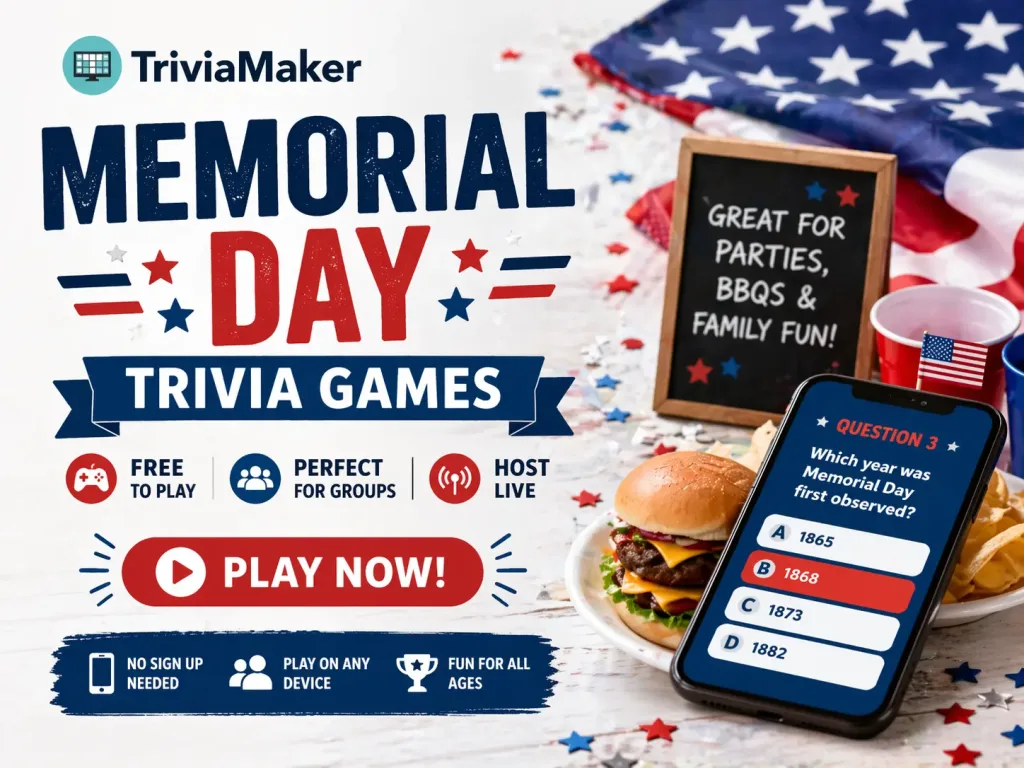 Memorial Day weekend is one of the best times of year to bring people together – whether you’re gathered around a grill, sitting in a classroom, or connected on a video call. A well-run trivia game can turn any gathering into something people actually remember.
